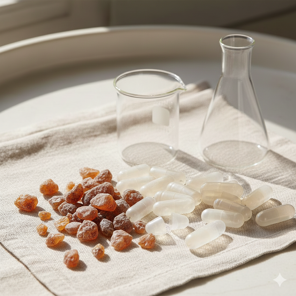 Gum Arabic is a natural, plant-based resin obtained from Acacia trees. After harvesting, the resin hardens into raw crystals which are later cleaned and processed by manufacturers for use across multiple industries.